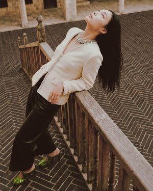 The fabric is delicate and need to be handled carefully. Dry Clean Only. Do not bleach. Iron at low temperature.